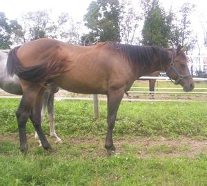 PANAMAS PIZA KANDY - Own Daughter of Panama Edition....pretty , well built Bay AQHA Apndx. Mare. 15-H Broodmare only. Own Daughter of PANAMA EDITION. This mare is easy to handle,great stall manners, gets along well in pasture with herd, very nice disposition, easy keeper. SOLD |