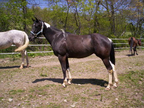 STROHLN WITH ATTITUDE : 2006 APHA black & white tobiano filly. Aprox, 15.H Green Broke as a late 2 yr old & ridden for 3-4 months as . SOLD! |