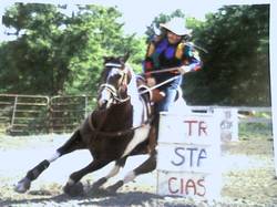 our dqaughter Janelle & her horse Partee Boy Runin barrels at a PA high school rodeo |