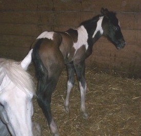 2003 BAY tobiano filly-Owned by-Jean Ponstingle- by DOLLAR out Grey Arab mare. |